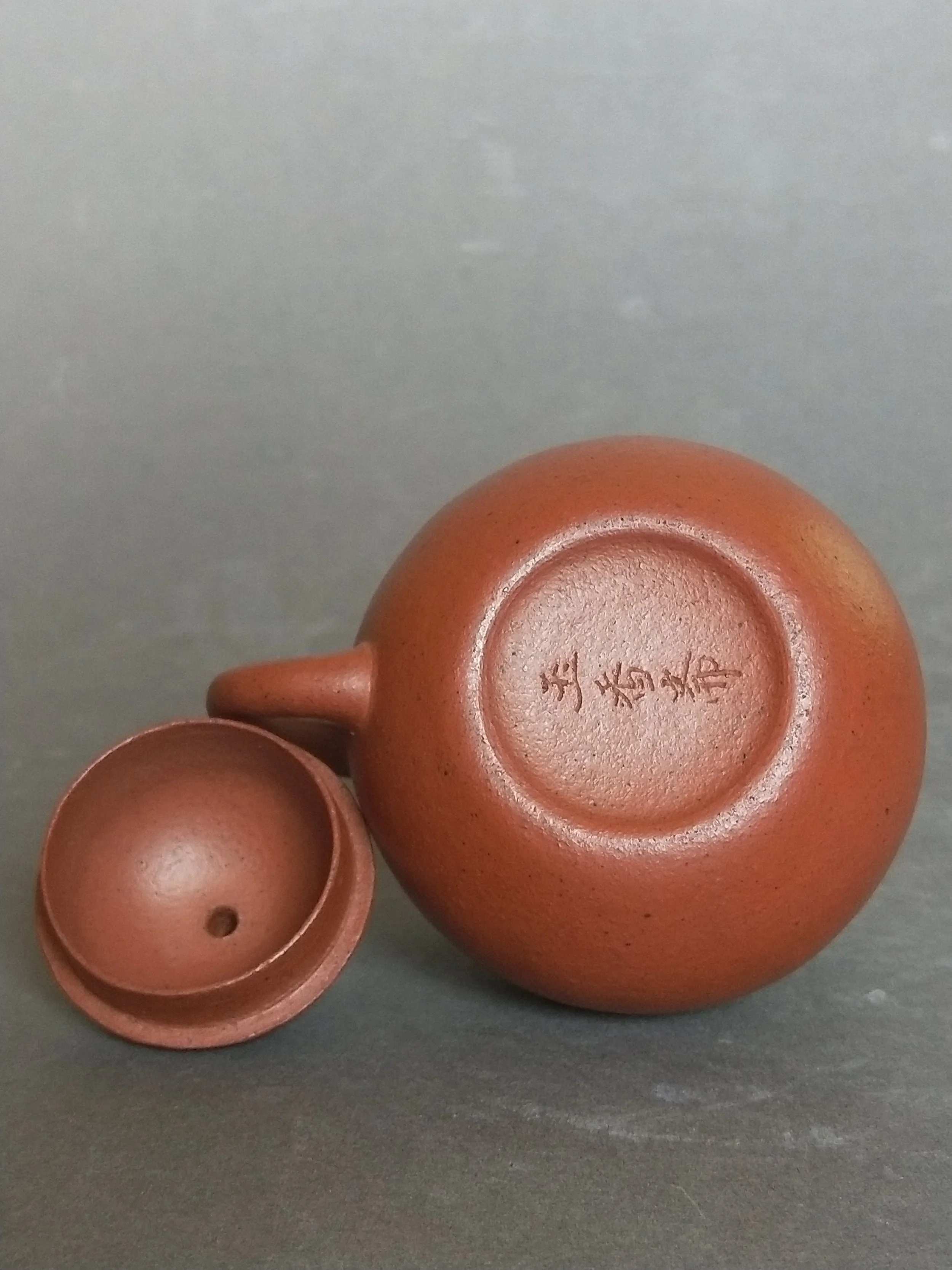 乾隆"玉香斋“刻款红泥龙蛋壶 宽9.0 腹7.1高9.4公分125克 胎泥多红和黑颗粒。